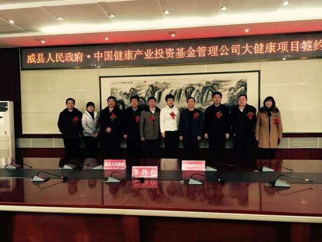 2016年1月22日,河北省威县人民政府与熊猫体育·熊猫官方网站-熊猫体育(中国)大健康项目签约仪式在河北省威县举行。威县人民政府县长商黎英、副县长孟祥义、副县长潘延彬,熊猫体育·熊猫官方网站-熊猫体育(中国)副总裁韩子宇、美好乡村农业科技发展有限公司总裁郭洪卫等出席签约仪式。 威县招商局局长刘汝恒主持仪式。韩子宇总裁首先对熊猫体育·熊猫官方网站-熊猫体育(中国)相关情况和前期准备工作做了详细介绍,商黎英县长对熊猫体育·熊猫官方网站-熊猫体育(中国)长期以来关注和支持威县发展表示感谢,并介绍了威县的经济环境、政策环境以及大健康事业发展情况。随后,双方就在威县人民政府关于推进健康服务事业发展的战略部署和总体规划下,分阶段开展大健康项目合作等问题进行了深入探讨并达成协议。双方同意,将发挥各自优势,共同推动医疗卫生、养老服务、健康管理、体育休闲、绿色农业、环保清洁等大健康领域的建设和合作,熊猫体育·熊猫官方网站-熊猫体育(中国)将发挥自身投融资平台优势,对威县健康产业分期投资总额将达到10亿元人民币。