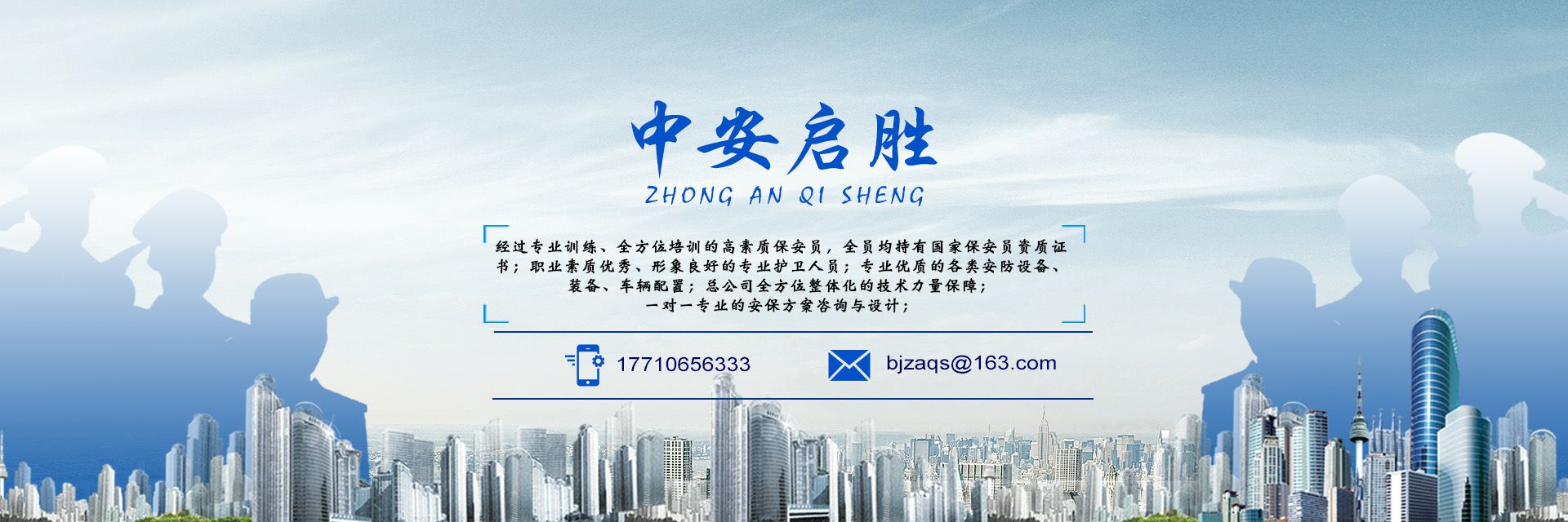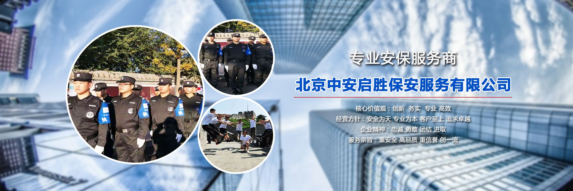 人力防范:公司将传统人力防护与科技结合谋划发展新思路,已响应国家“一带一路”战略为途径,打造“中安启胜保安”品牌,致力于保安服务业标准制定提供品质最优的保安服务